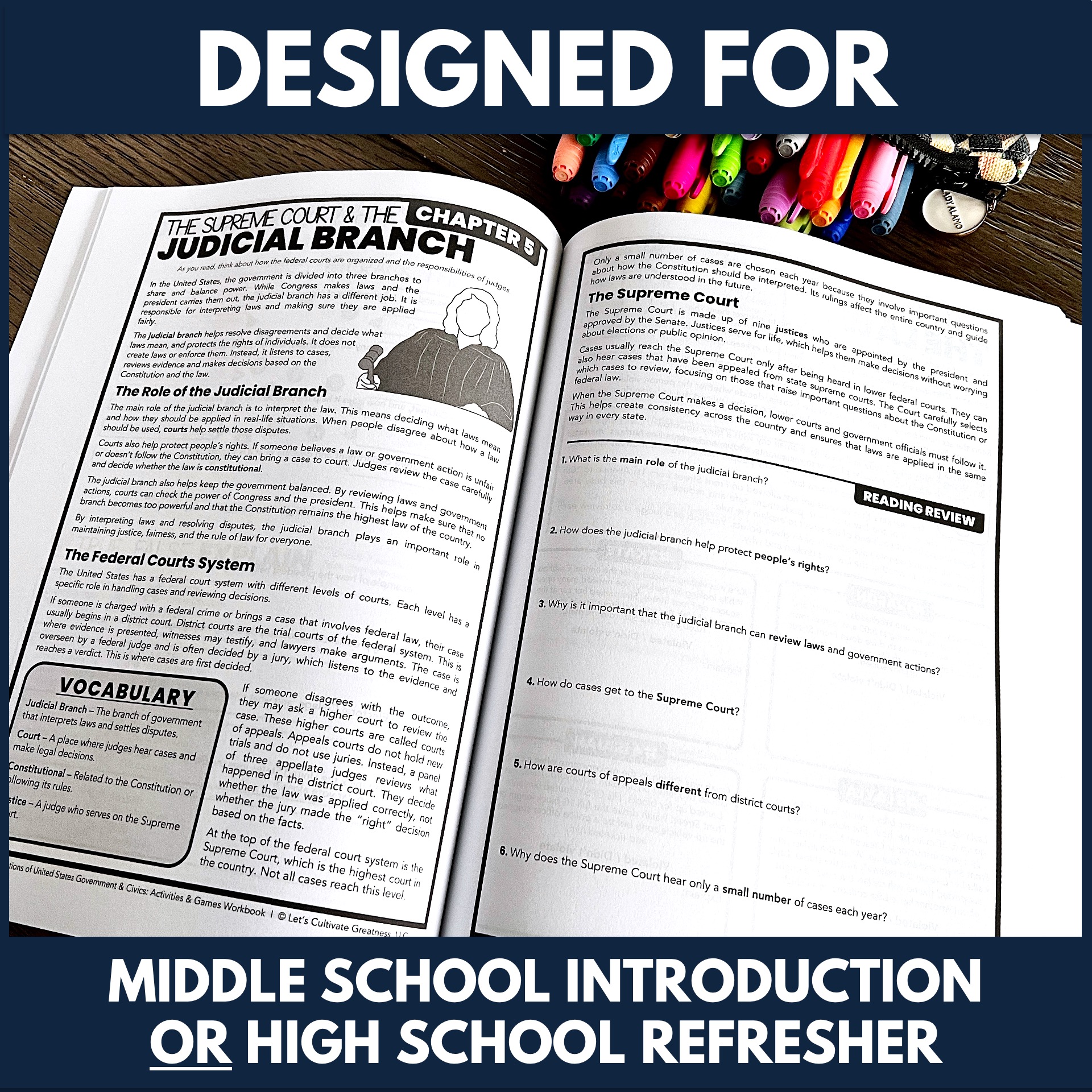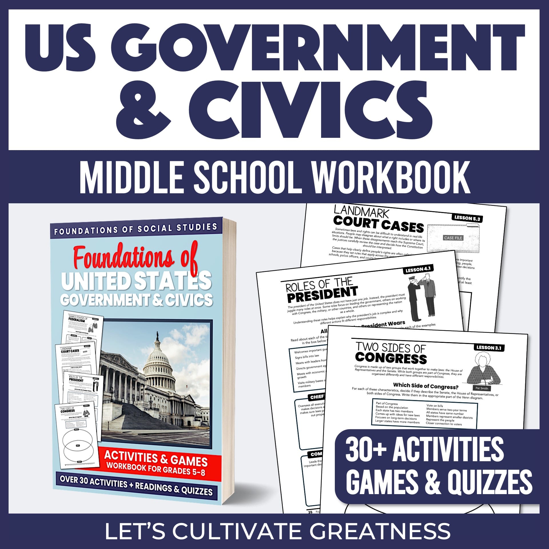 Through short, student-friendly readings, hands-on activities, and interactive review games, students explore topics ranging from the purpose of government and American values to the three branches, federalism, and state and local government. Concepts are explained clearly, practiced meaningfully, and connected to real life.