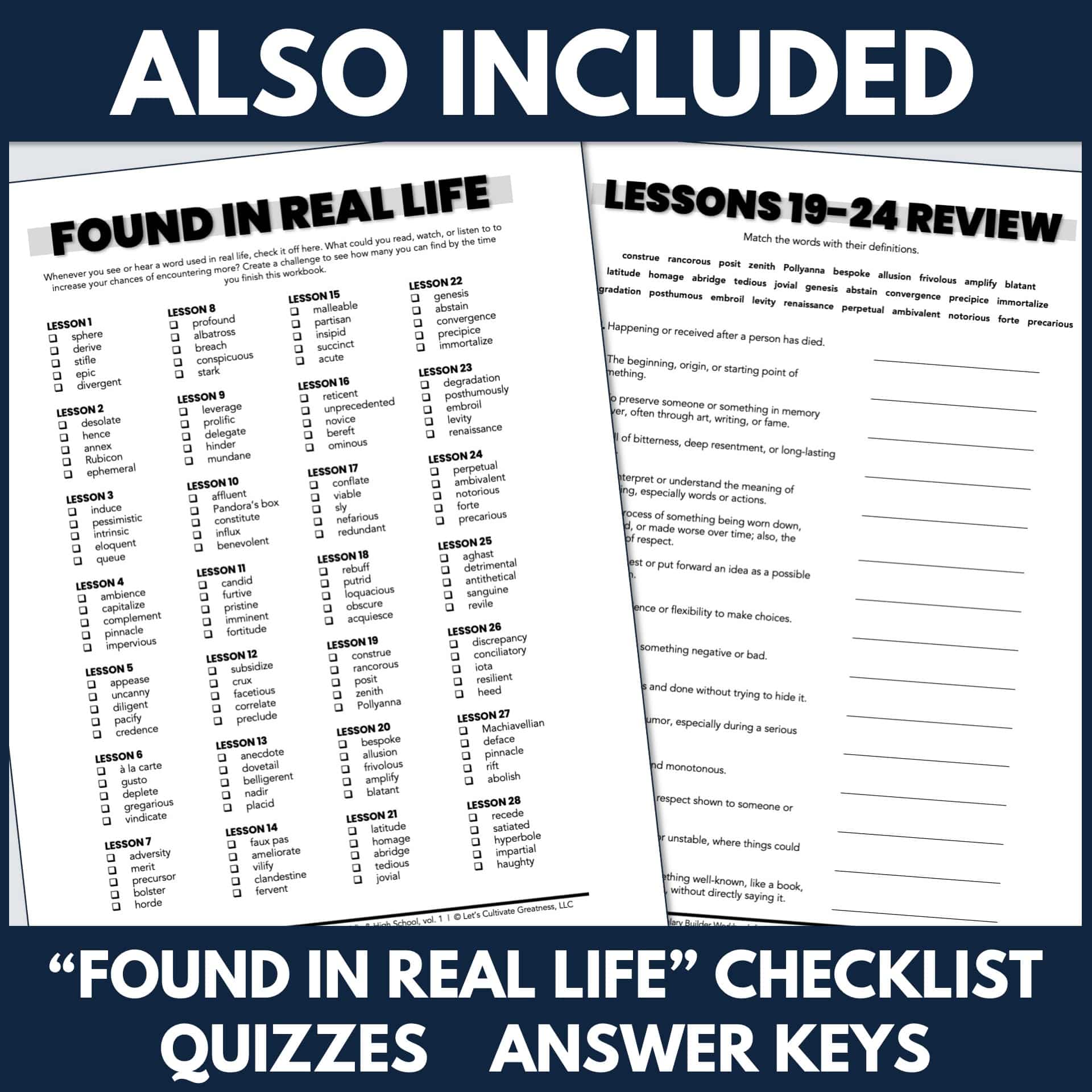 - Curated word lists chosen for real-world relevance and college readiness
